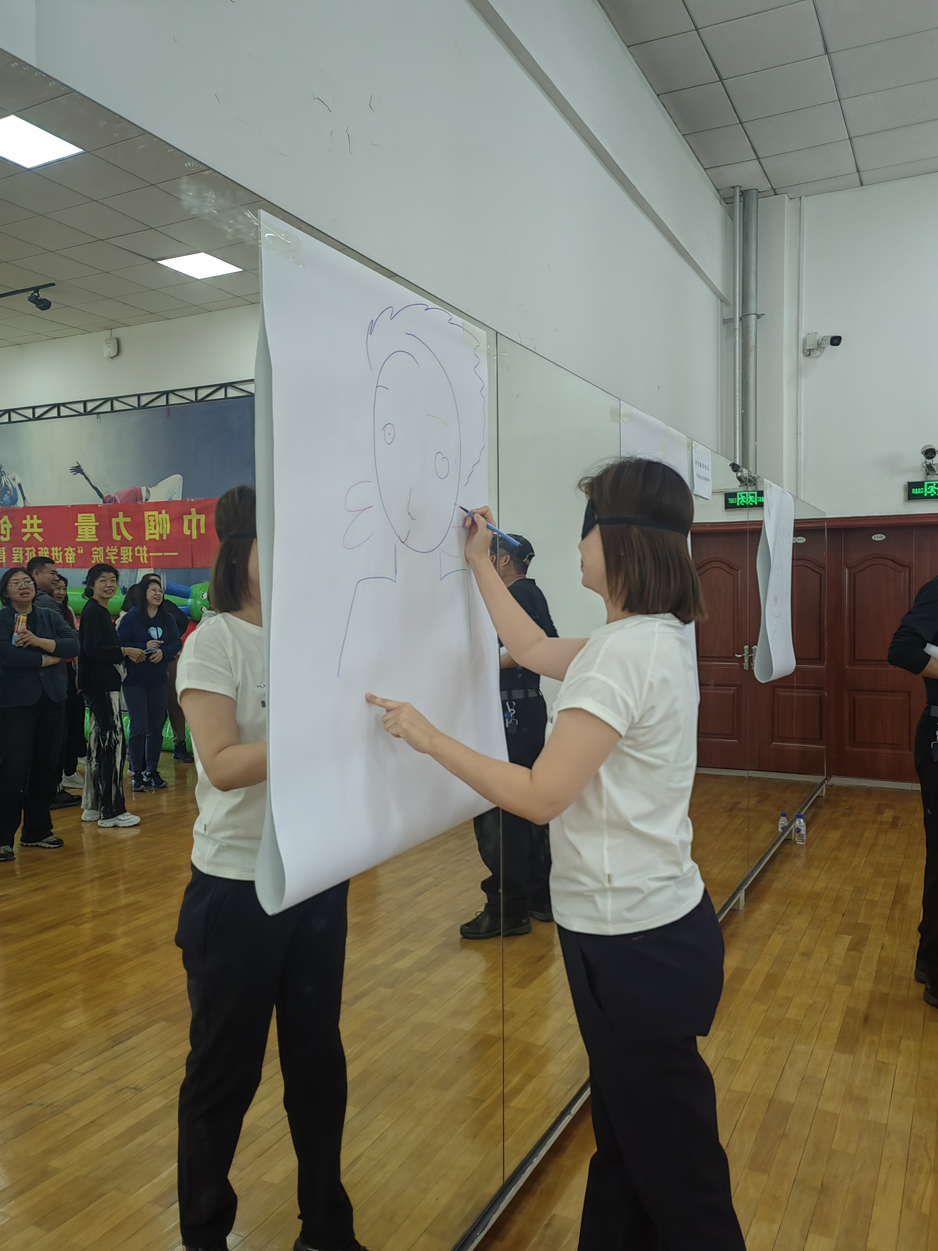 在趣味运动会正式开始前,通过各种热身活动,调动起老师们的热情和积极性,做好运动前准备。趣味运动会共有同舟共济、U型槽传球、天旋地转、谁是画家等四个项目,将所有老师分成三组。在旱地龙舟上,老师们同舟共济,齐心协力向前冲;在传球环节,老师们配合默契,展示团队协作的重要性;在天旋地转项目,考验了参加老师的技巧和体能;“谁是画家”虽不是运动项目,却给老师们带来开心欢乐。