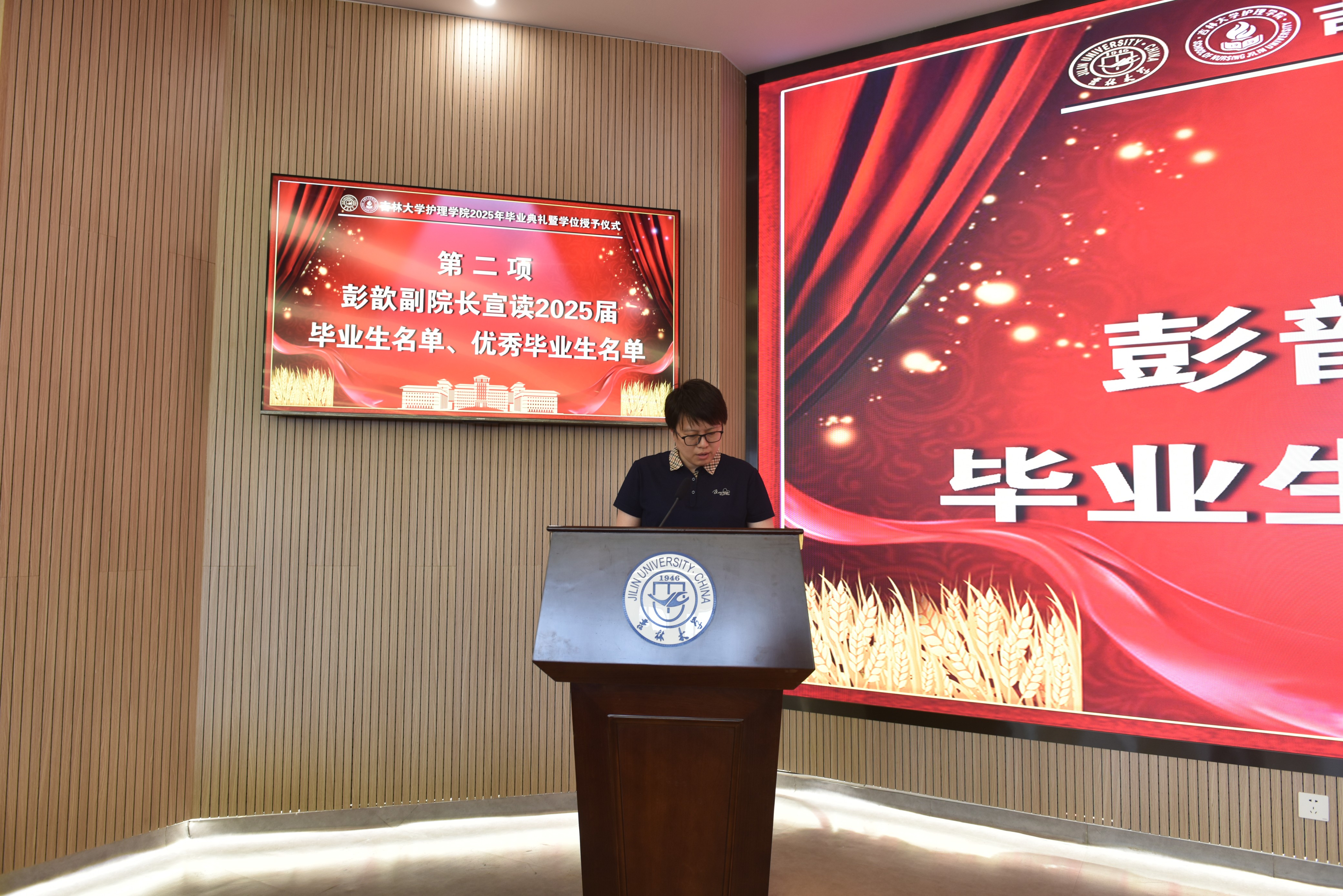 2025年6月18日下午,新葡萄官网AMG在新民校区第一教学楼401白求恩大讲堂隆重举行2025年毕业典礼暨学位授予仪式。学院全体领导班子,学院学位委员会、学术委员会、教学委员会主任,各教研室、科室主任,研究生导师、毕业年级班主任等部分教师代表,以及2025届全体本科生和研究生参加典礼。典礼由党委副书记兼副院长密佳音主持。