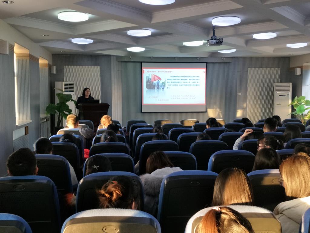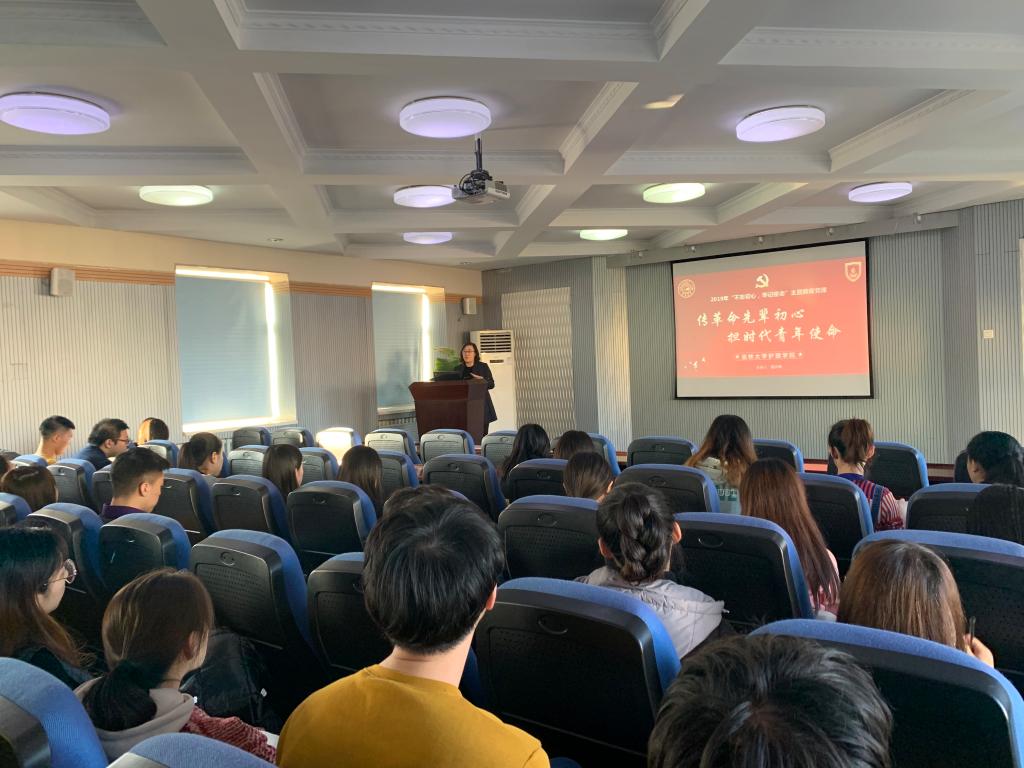 葛宗梅同志以“传革命先辈初心,担时代青年使命”为主题,通过讲述党史中的大事件和红色革命故事,讲述了革命先辈在为红色政权建立、新中国成立和社会主义建设过程中,进行了艰苦卓绝的斗争,做出了不可磨灭的贡献,让同学们深刻的认识到了红色政权的来之不易,新中国的来之不易,中国特色社会主义来之不易。她要求党员必须学习党史、新中国史,自觉接受红色传统教育,传承革命先辈遗志,把我们的国家守护好、建设好。