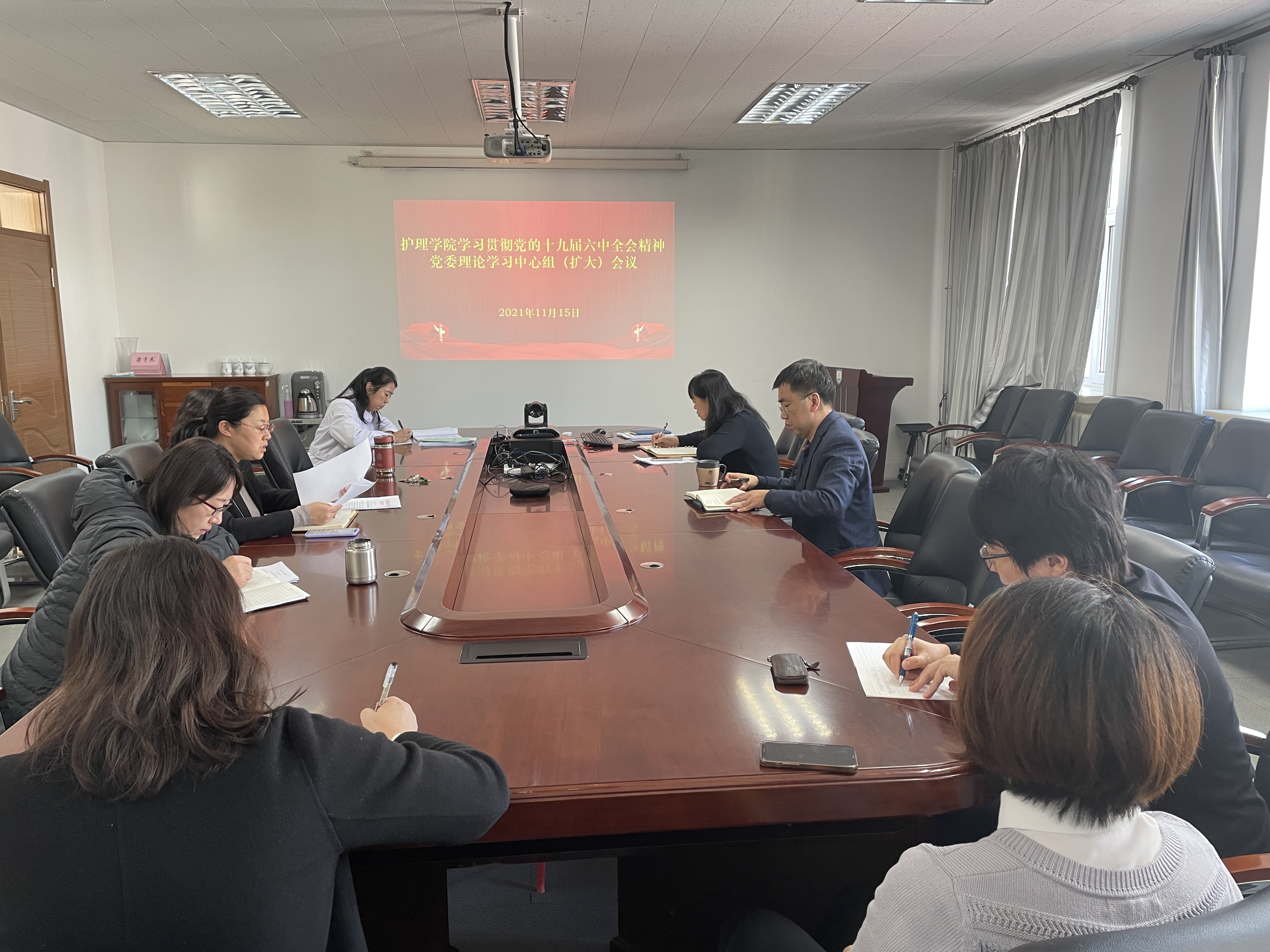 为深入学习贯彻党的十九届六中全会精神,落实新葡萄官网AMG党委理论学习中心组(扩大)会议要求,11月15日上午,新葡萄官网AMG党委召开党委理论学习中心组学习(扩大)会议,中心组全体成员、各支部书记参加会议,会议由韩月波书记主持。