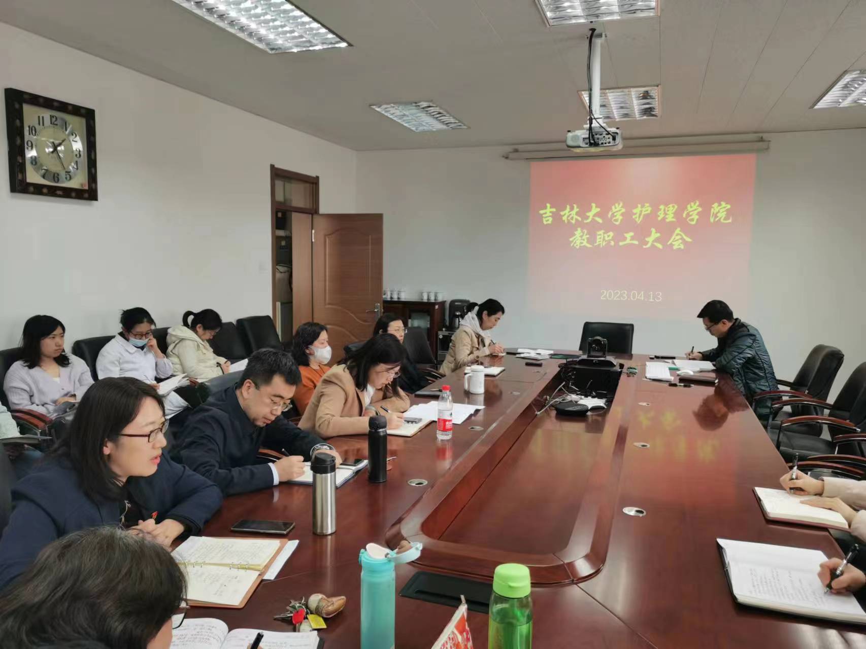 2023年4月13日,新葡萄官网AMG在三楼会议室召开全院教职工大会,会议由学院党委书记韩月波主持。