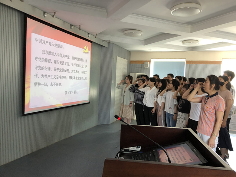 在激情豪迈的《国歌》之后,党办主任于继珍同志作为领誓人带领党员庄严宣誓,所有参加仪式的党员一起面对鲜红的党旗,举起右手进行庄严宣誓,以掷地有声的铮铮誓言,表达了共产党员的理想信念和价值追求。新党员代表刘彦廷同学发言,她表明了将把入党誓词作为自己毕生信念、终身追求的决心和态度,将以更加坚定、更加成熟、更加昂扬的姿态去奋斗、去实践,绝不辜负党组织的期望。入党积极分子代表郭美杉同学发言,她表示将在以后的学习生活中严格要求自己,坚定理想信念,不断向党组织靠拢。