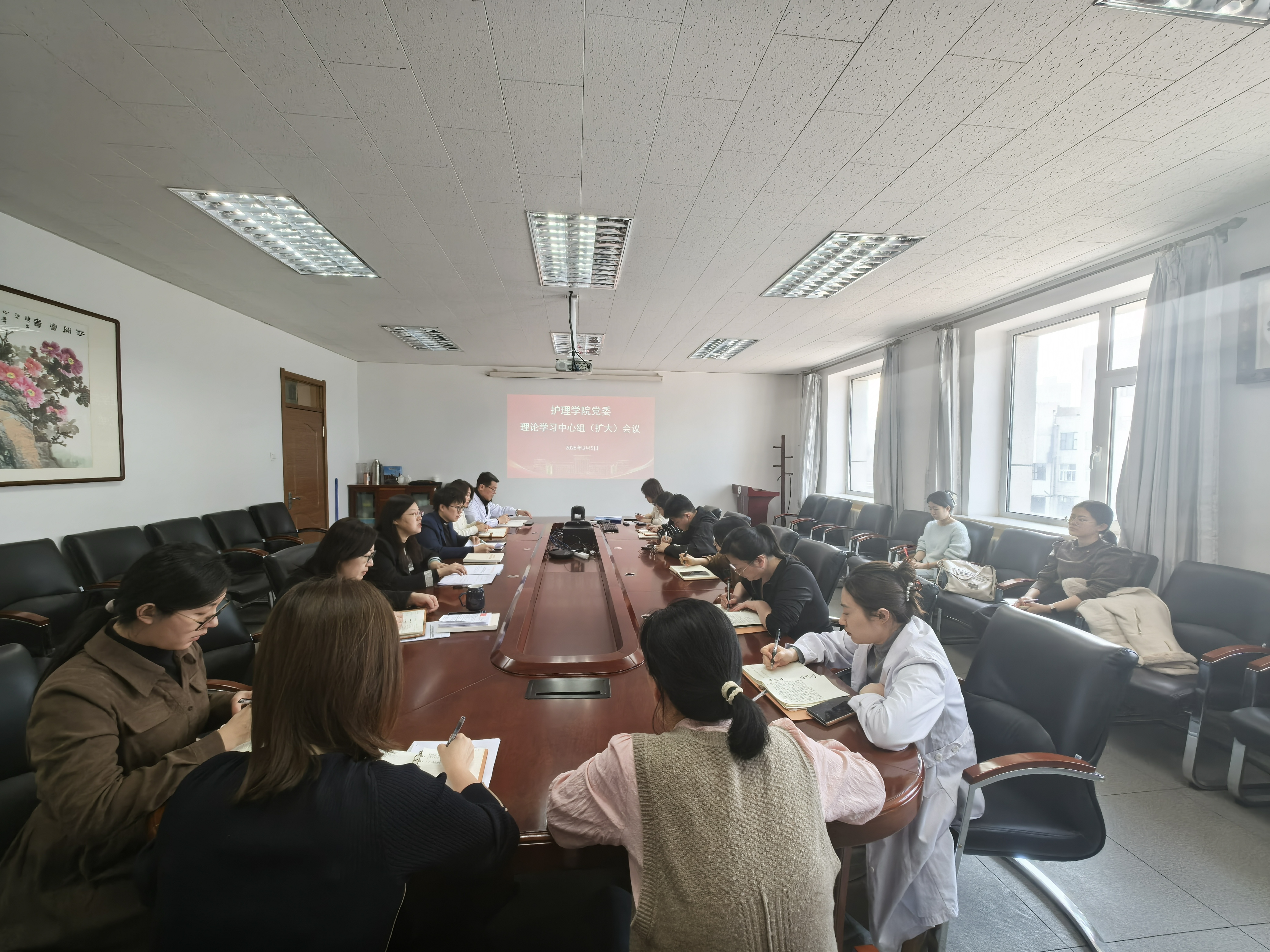 砥砺前行,齐心筑梦。3月5日下午,新葡萄官网AMG召开党委理论学习中心组(扩大)会议,深入学习习近平总书记重要讲话精神,传达2025年度学校工作会议精神。会议由院党委书记韩月波主持,学院领导班子、党委委员、纪委委员、院长助理、三委主任、党支部书记和行政科室人员参加学习。