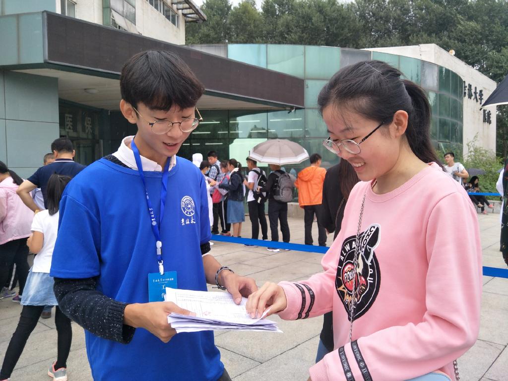 新葡萄志愿者们陆续引导着新生来到五月花广场的报到处,在此办理业务的志愿者们耐心地指导着新生完成所有报到流程。之后志愿者们指引新生体检,并带领他们入住寝室。值得一提的是,新葡萄有40名同学作为新生体检志愿者协助校医院完成引导、血压测量等体检工作,校医院对志愿者们的细心工作给予肯定。