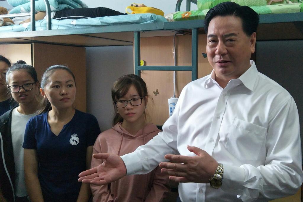 席海涛书记和陈立院长等院领导在陪同校领导走访了女生寝室后又继续走访了南苑二公寓男生寝室,并到迎新现场看望了工作人员及新生。席书记和陈院长询问了学生们的生源地情况以及报考志愿情况,得知大部分同学第一志愿填报了护理专业,院领导对他们给予了欢迎和鼓励,叮嘱同学们珍惜大学时光,努力成长成材。