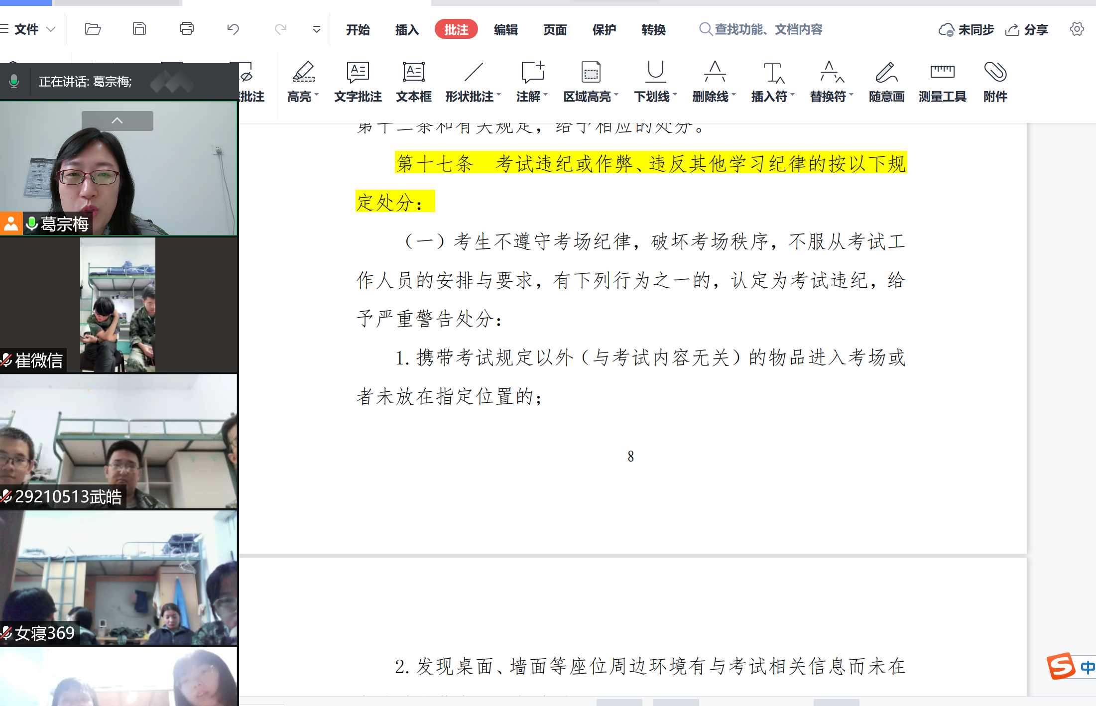 为加强学生的自我管理能力,帮助新生尽快适应大学的学习和生活,树立新生的集体意识,建设文明校风,弘扬吉大精神,增强新生同学作为“吉大人”的责任感、使命感和自豪感。2021年9月25日上午,新葡萄官网AMG党委副书记兼副院长、2021级新生辅导员葛宗梅通过线上会议方式主持召开了2021级新生年级大会,开展新生入学教育。2021级全体新生参加中。