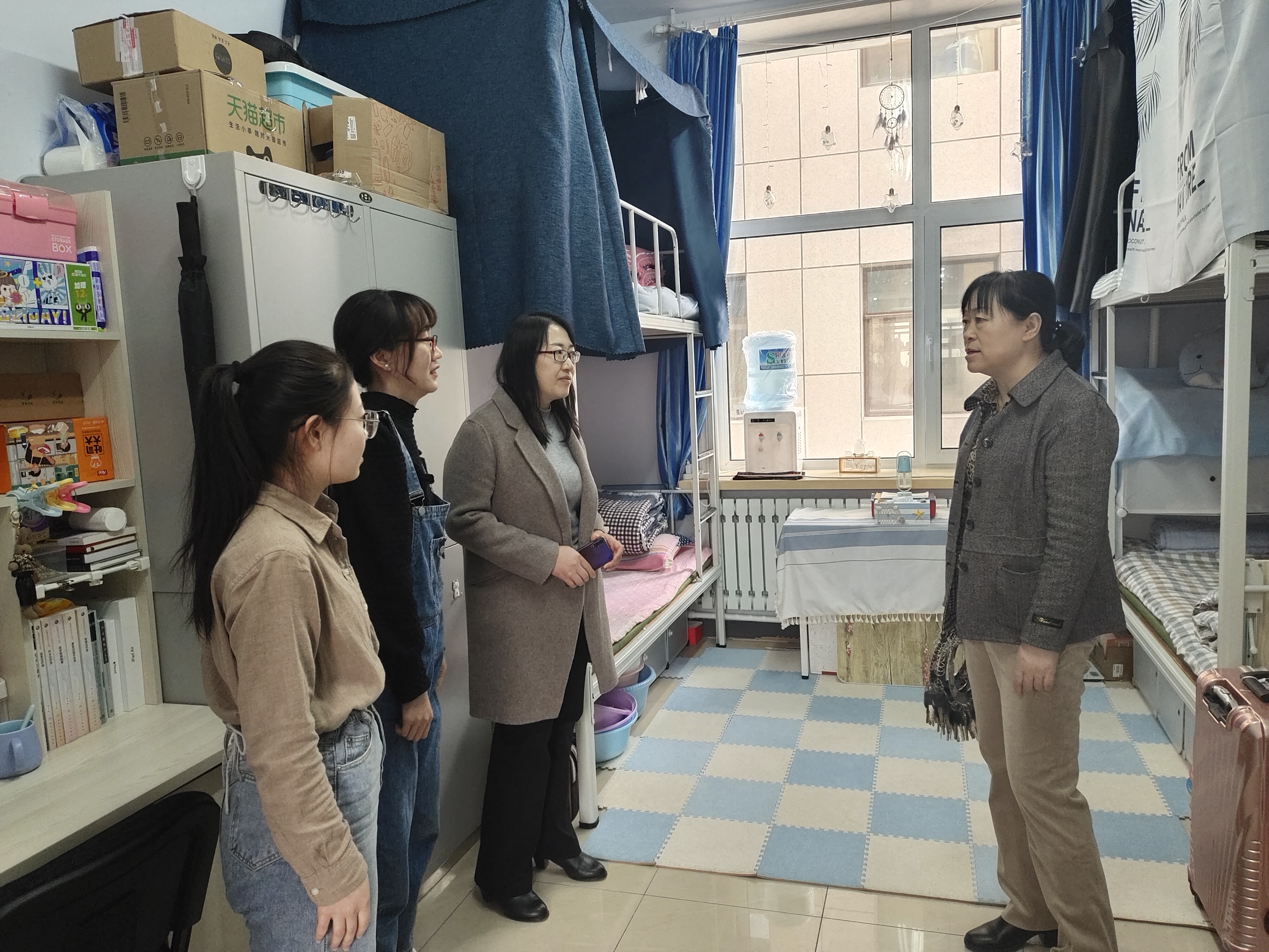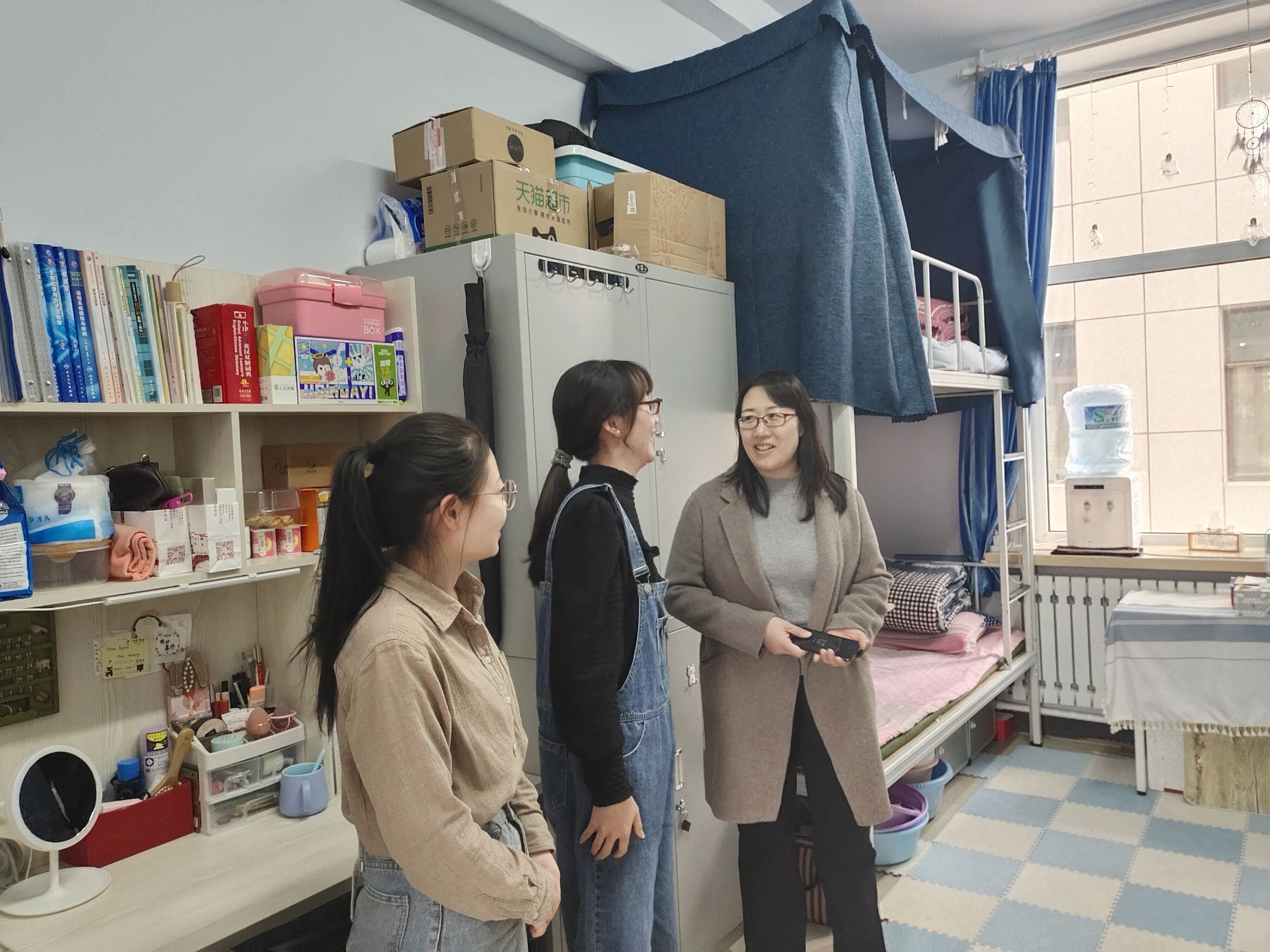 为了解学生春季学期返校后生活状况和思想动态,敦促学生尽快投入到新的学习、生活中,做好新学期寝室安全卫生工作,新葡萄官网AMG党委书记兼副院长葛宗梅、辅导员李亚琴、常方圆、刘宇飞在开学之初对学生公寓进行了走访检查。