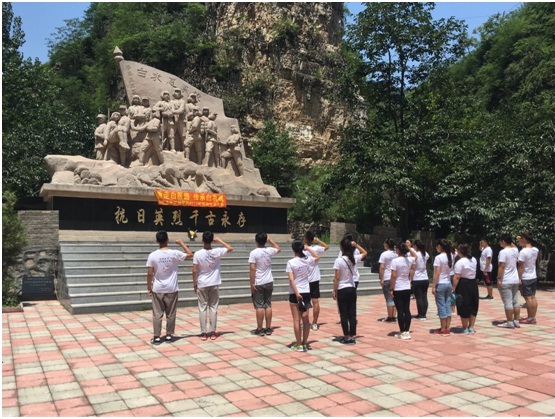 师生一行人于上午九时到达白银坨,从石湖峡口上山,途径一线天、卧虎山等地到达白求恩学校学子遇难烈士纪念馆。并在学子遇难遗址广场举行了庄严的宣誓活动。