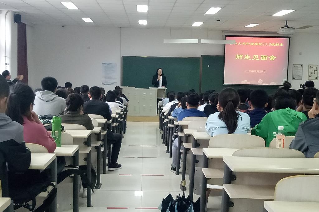 为了使2018级新生初步了解学院师资力量、专业设置、教学管理、就业方向等情况,更好地适应大学生活、融入大学生活、规划大学生活,新葡萄官网AMG于8月29日下午在前卫校区李四光楼102教室举办了2018级师生见面会。2018级全体新生参加会议,党委书记席海涛、学院院长陈立、副院长李昆、副院长、学院各教研室主任、各办公室主任、学生工作办公室全体人员出席了本次见面会。会议由院党委副书记兼副院长、2018级辅导员葛宗梅主持。