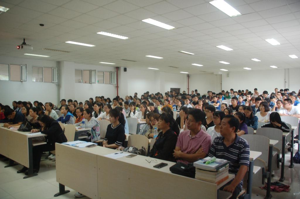 师生见面会之后,教学办公室的刘静泉老师针对选课、转专业、本科生考试事项以及学业预警工作实施办法等教学管理问题给新生们进行了讲解。
