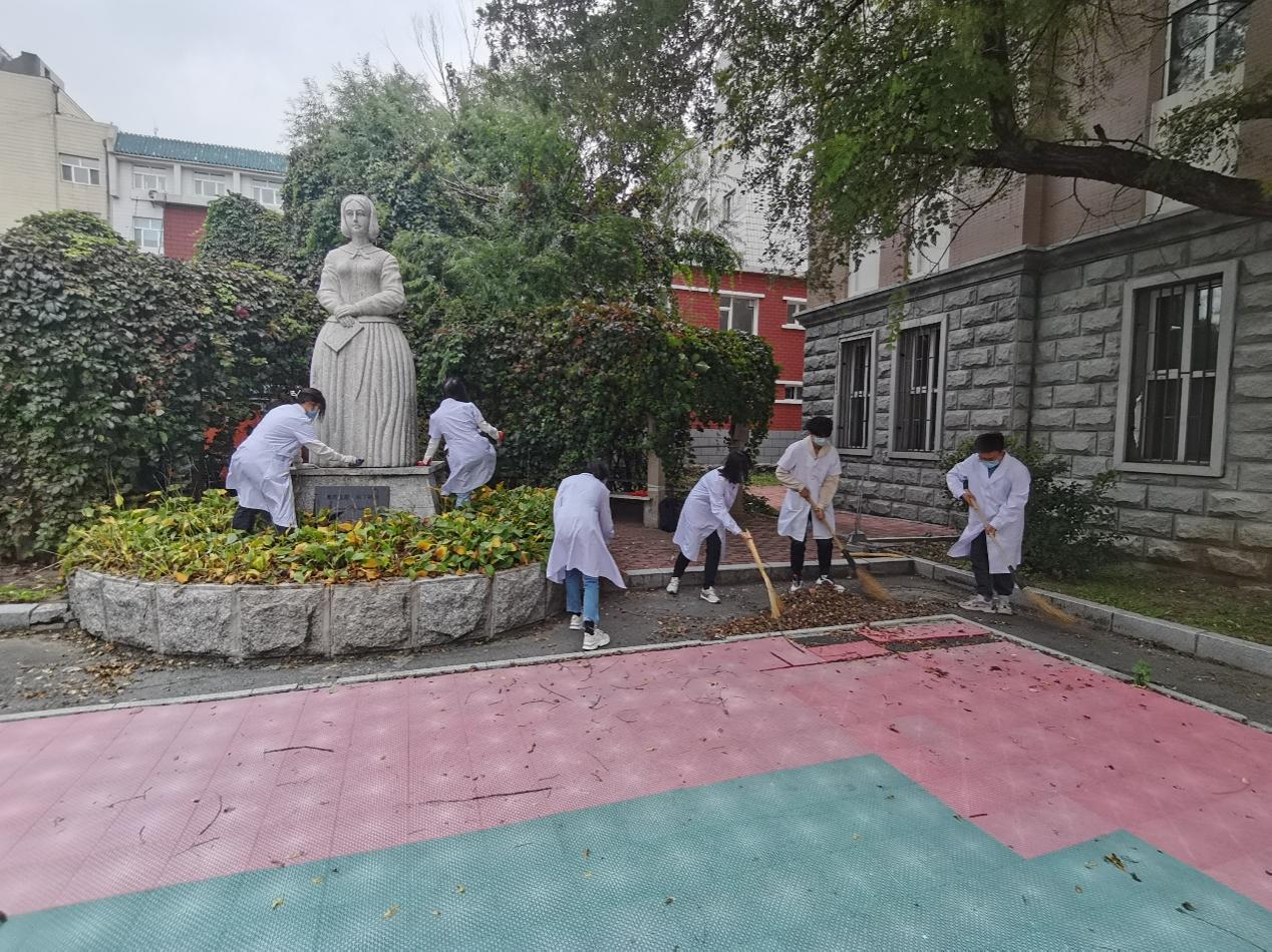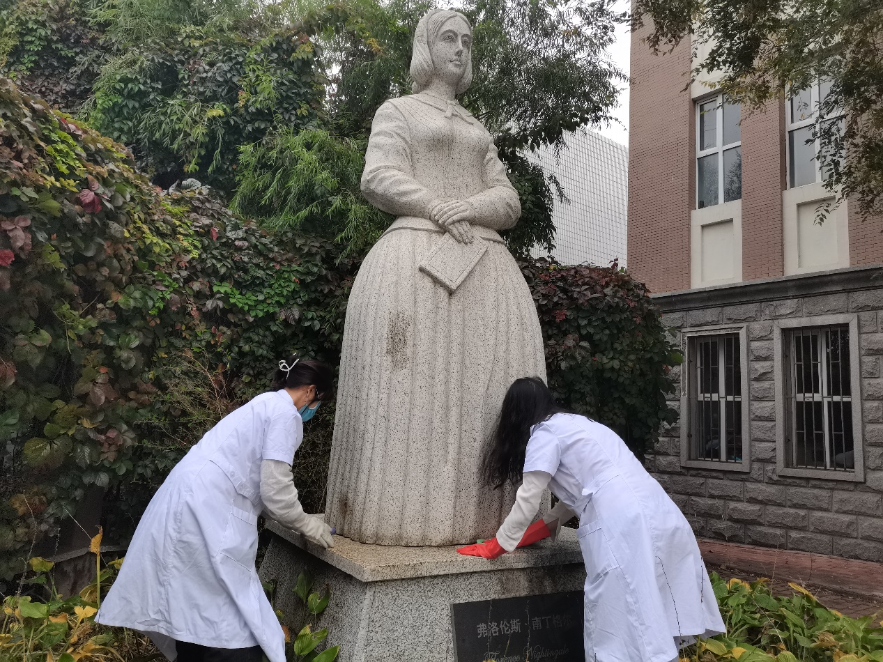 “拾步校园”劳动小队于2021年10月3日早晨8:30,在新葡萄官网AMG院内开展了以“清扫南丁格尔雕像”为主要内容的劳动实践活动,将十一黄金周变为金秋劳动周。秋风带着凉爽而来,也留下了落叶缤纷。“拾步校园”劳动小队带着清扫工具来到新葡萄官网AMG院内,为南丁格尔雕像拂去微尘,扫清其周围落叶,站在雕像面前默默纪念,内心重温南丁格尔 “终身纯洁,忠贞职守,竭诚协助医生之整治,务谋病者之福利”的誓言。用自己的亲身劳动来表达对“提灯女神”的最大敬意与无限哀思。
